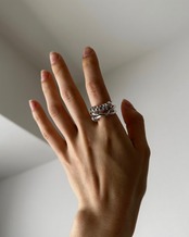 3連デザインと可動する小さな輪っかが存在感を出し、程よい太さで手元を華やかにしてくれます。