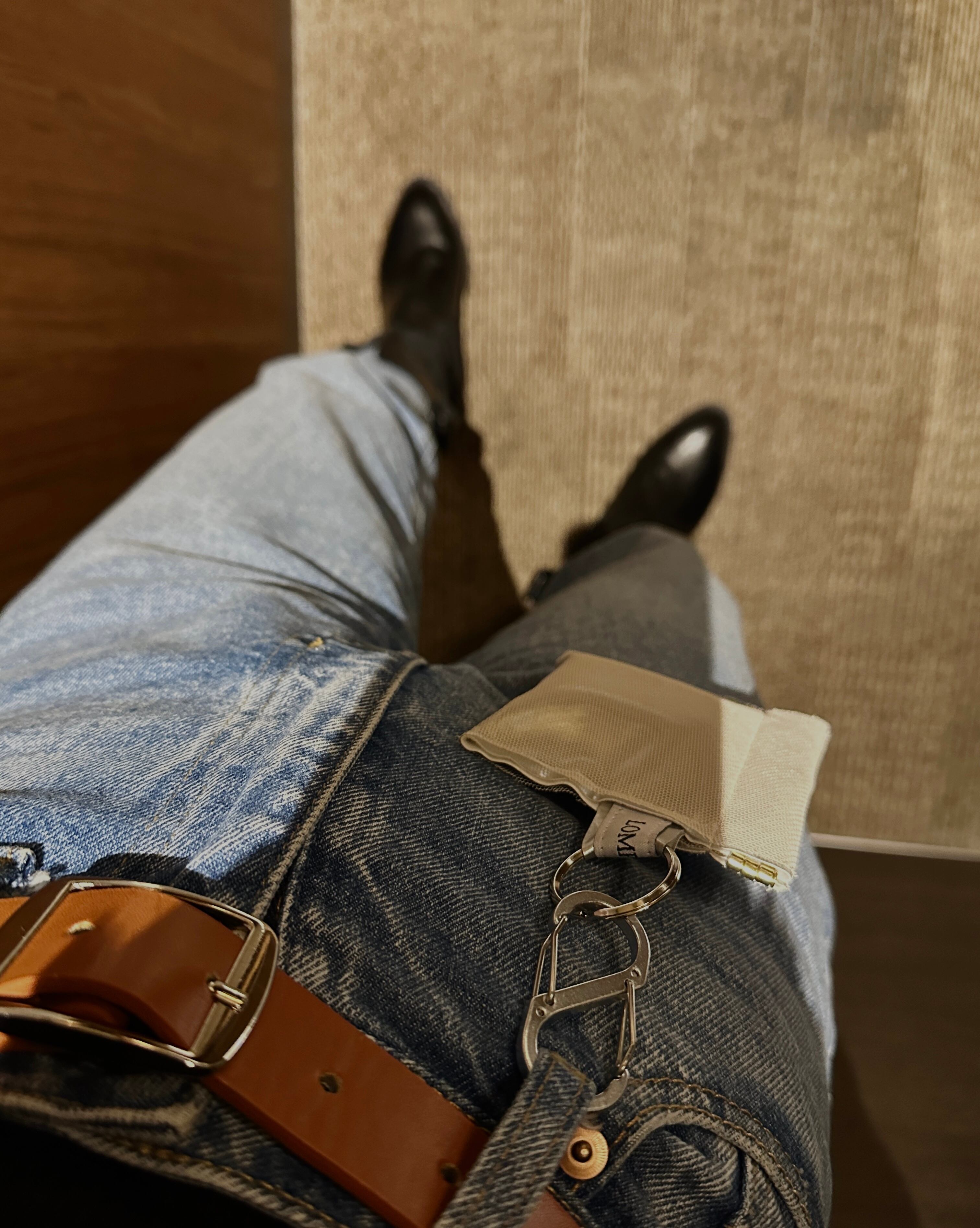 サブポケットとしてコーディネートの邪魔にならないようにシンプルなデザインに仕上げました。