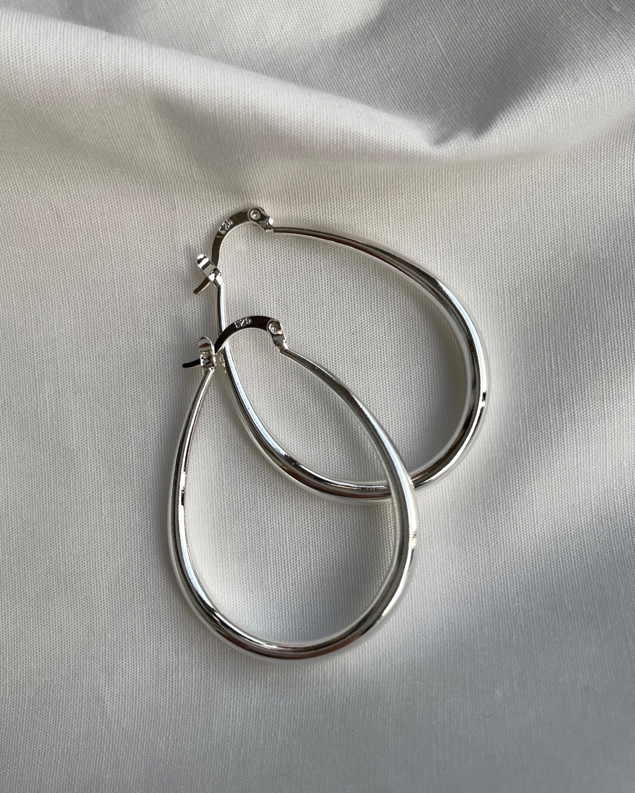 程よい大きさで、雫のようなフォルムをしたフープピアス。