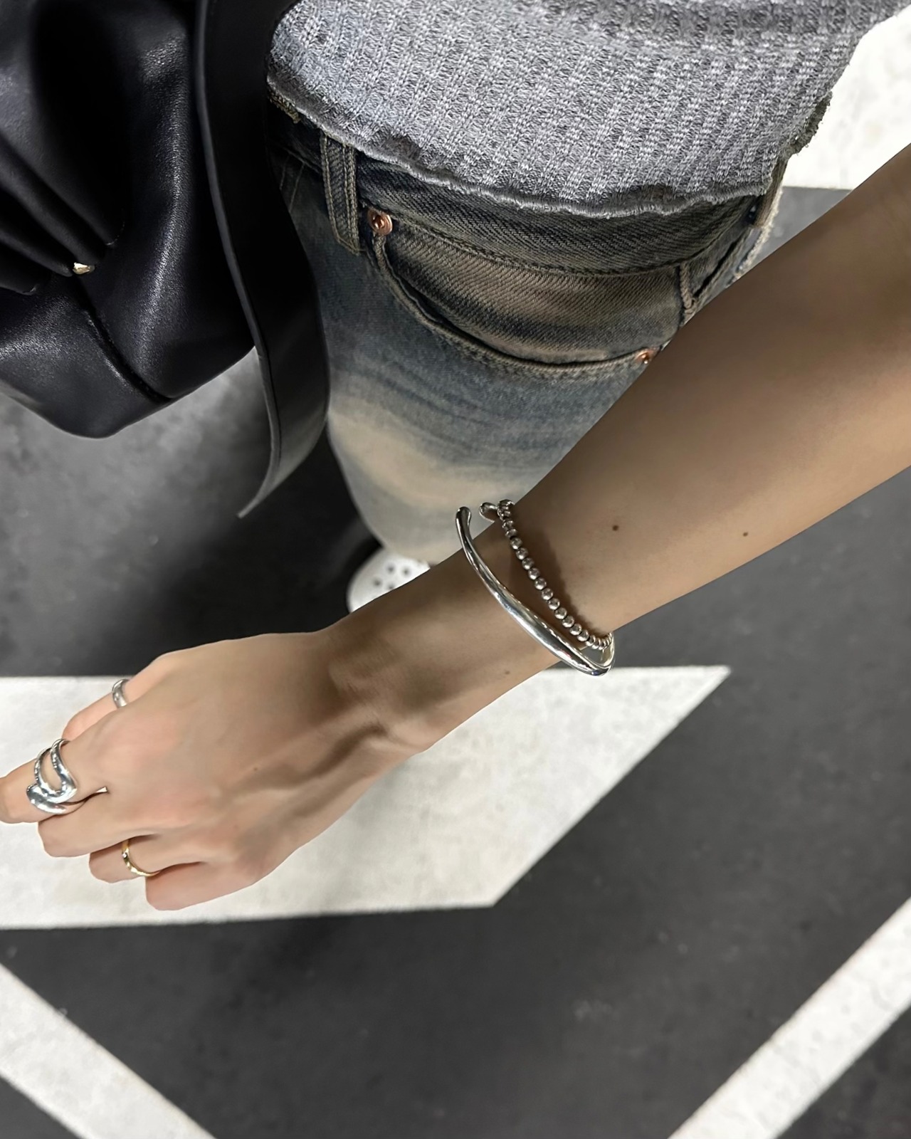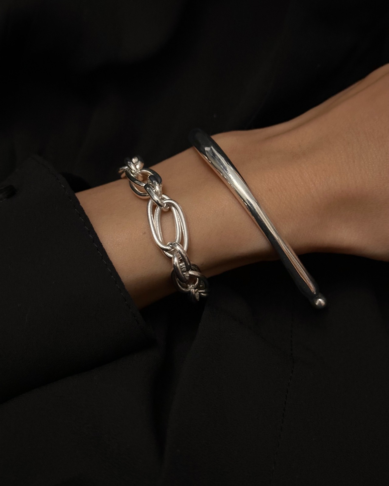 腕に馴染みやすく、1点使いはもちろん、チェーンブレスレットなどの重ね付けも相性抜群です。