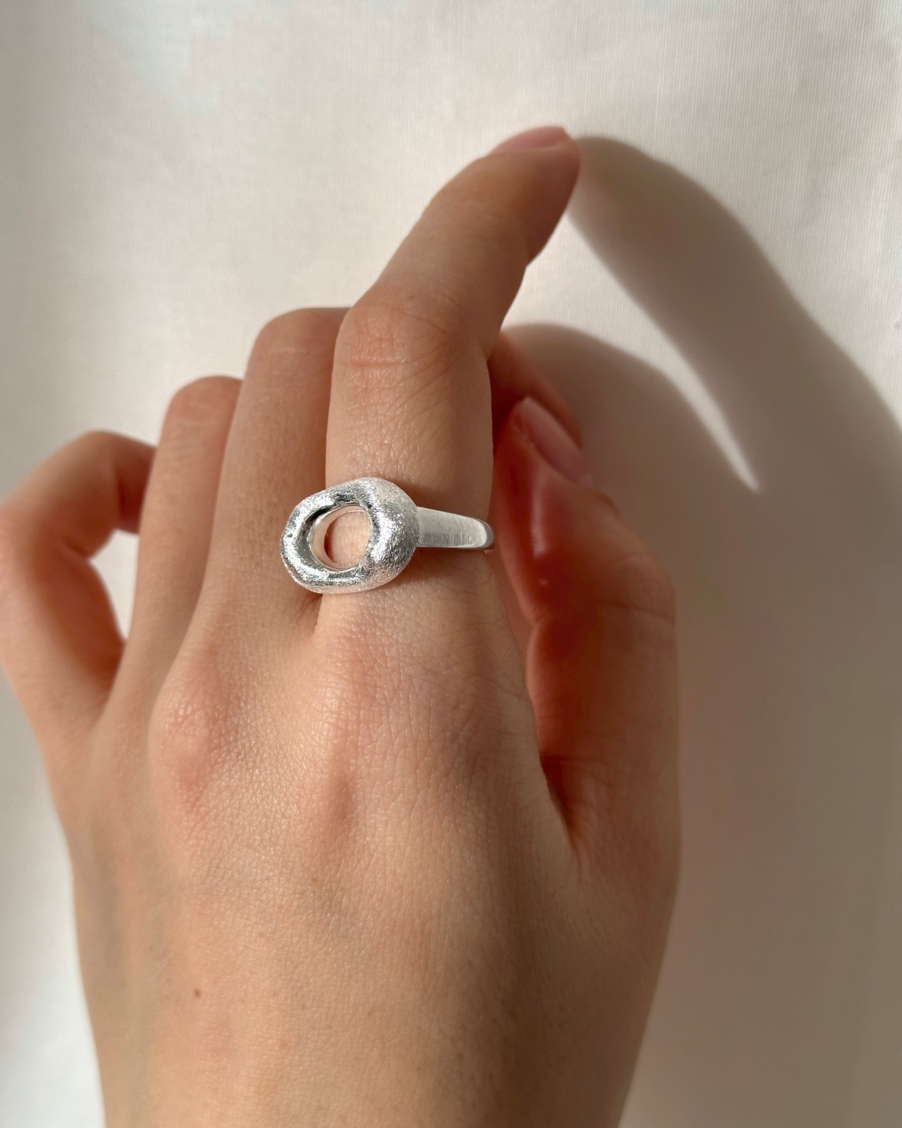 ナチュラルなオーバル型のデザインリング。
